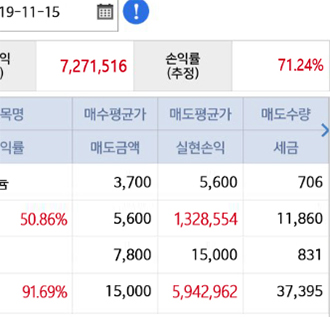 < 문자서비스를 통해 올린 실제 수익내역 >